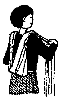 Šátek přehoďte přes ramena a do zadu spusťte smyčku (asi do pasu). |