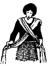 Jeden konec šátku by měl být delší, asi o 20 cm. Cípy šátku na břiše překřižte. |