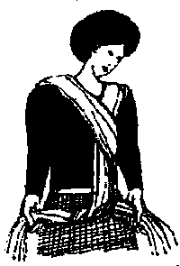...a svažte jej ambulantním uzlem s kratším koncem šátku nad kyčlí. Látkový kříž před břichem posuňte o něco níže. |