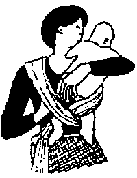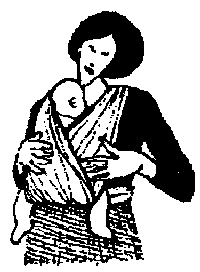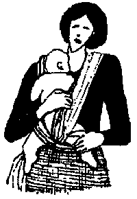 Přidržujte dítě tak dlouho, dokud neroztáhnete obě dráhy (nejprve vnitřní, potom vnější) přes zadeček a záda dítěte. Vnitřní dráhu můžete - je-li to nutné - přetáhnout přes hlavičku (třeba když dítě usnulo). Dítě musí sedět v šálu těsně přitisknuté k vašemu tělu. |